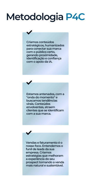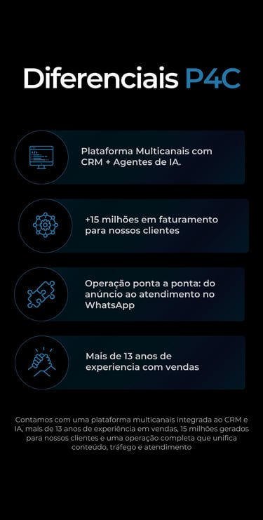 Antes da P4C, nossa presença digital era praticamente inexistente. Hoje, grande parte dos nossos clientes vêm através das redes sociais e campanhas online. O mais impressionante é que não apenas aumentamos o número de clientes, mas também a qualidade e o valor médio das compras.